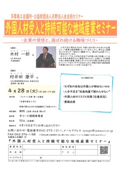 HOME > イベント情報 > > 多摩商工会議所・公益財団法人日野法人会合同セミナー 「外国人材受入と持続可能な地域産業セミナー」