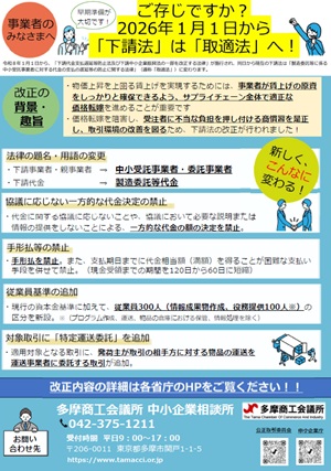 チラシ 「ご存じですか? 2026年1月1日から「下請法」は「取適法」へ!」 (日本商工会議所)